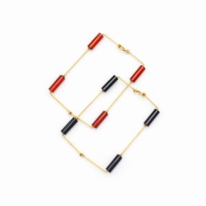 peso 14 gr. onice nero e corniola a sezioni cilindriche, misure 6,5x4,5 cm.