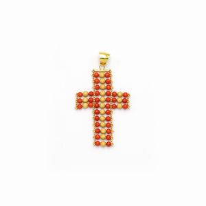 Pendente Croce in oro giallo 14kt e corallo