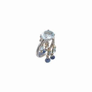 peso 5 gr. taglio ovale briolet, quattro pendenti con acquamarine taglio baguettes e zaffiri cabochon, misura [..]