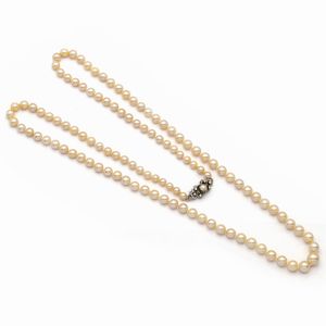 peso 69 gr. primi '900 disposte a gradazione da 6 a 9 mm. riuniti da chiusura in oro bianco 18kt rubino taglio [..]