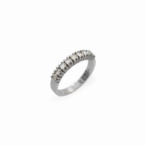 peso 9 gr. diamanti taglio brillante ct 0,50 circa, zaffiri tondi ct 0,20 circa, misura 17