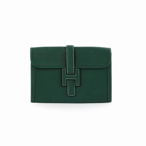 misure 29x20x2 cm. anni 80 circa in pelle verde, interno in tela beige ad uno scomparto, chiusura H in pelle [..]