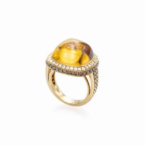 Anello in oro giallo 18kt quarzo citrino e diamanti