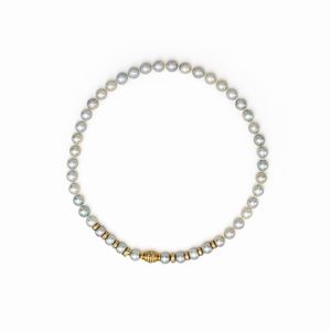 peso 59 gr. di 9 mm. circa, riunito da chiusura a barilotto in oro giallo 18kt e diamanti taglio brillante, rondelle [..]