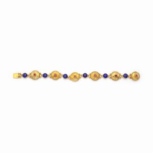 Bracciale in oro giallo 18kt rubini e lapislazzulo