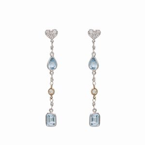 Orecchini pendenti in oro bianco 18kt acquamarine