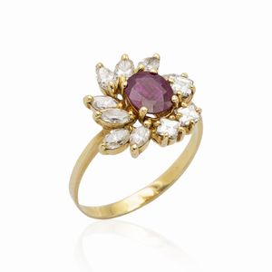 peso 14 gr. ct 1,20 circa contornato da diamanti taglio marquise e princess ct 0,75 circa, misura 14