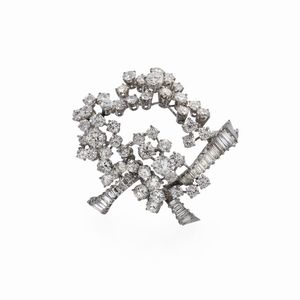 Spilla a motivo floreale in oro bianco 18kt e diamanti