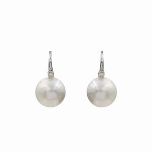 Orecchini a lobo in oro bianco 18kt e due diamanti