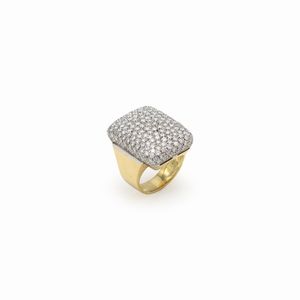 peso 19 gr. firmato in oro giallo 18kt e diamanti taglio brillante ct 2 circa, misura 8