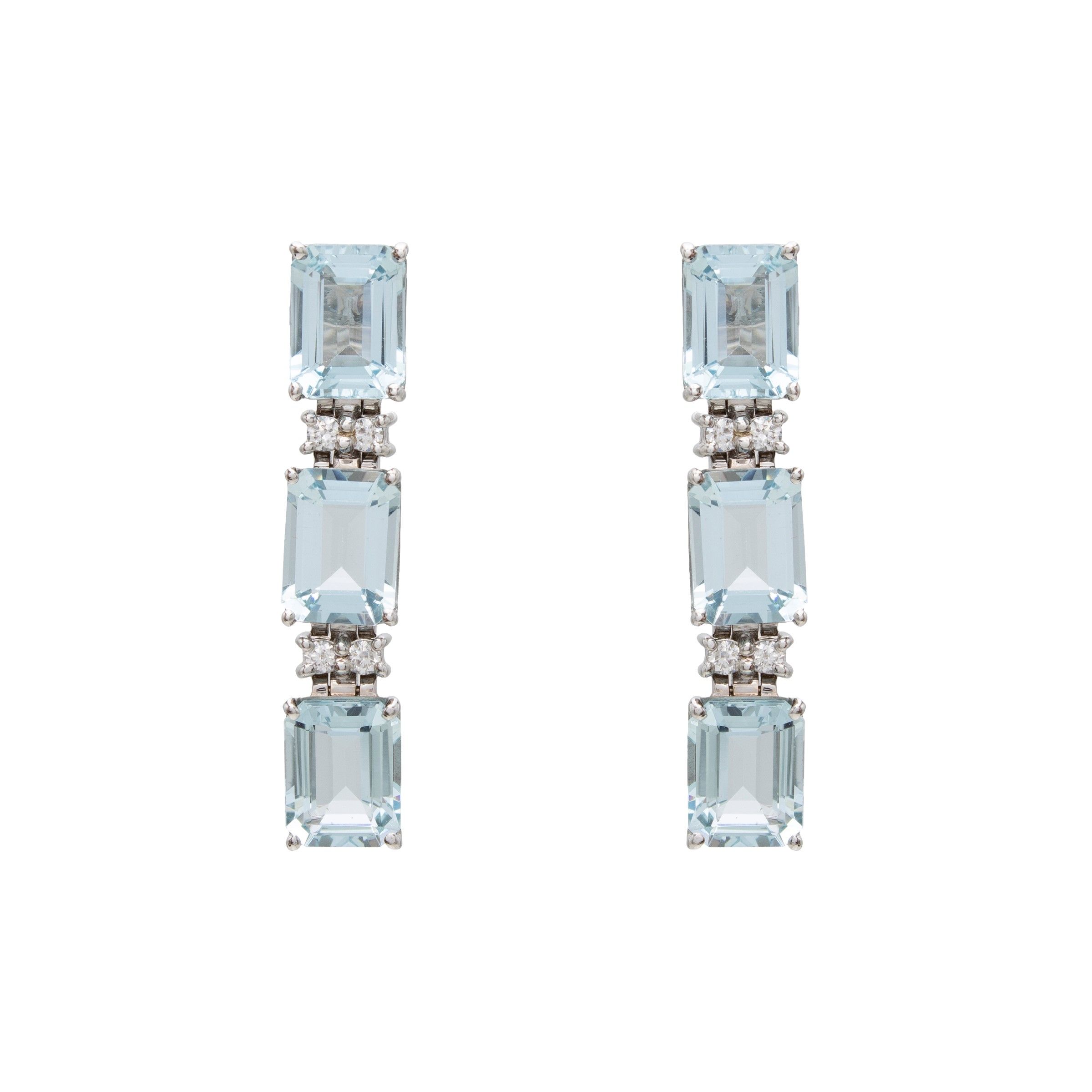 Orecchini pendenti in oro bianco 18kt acquamarine