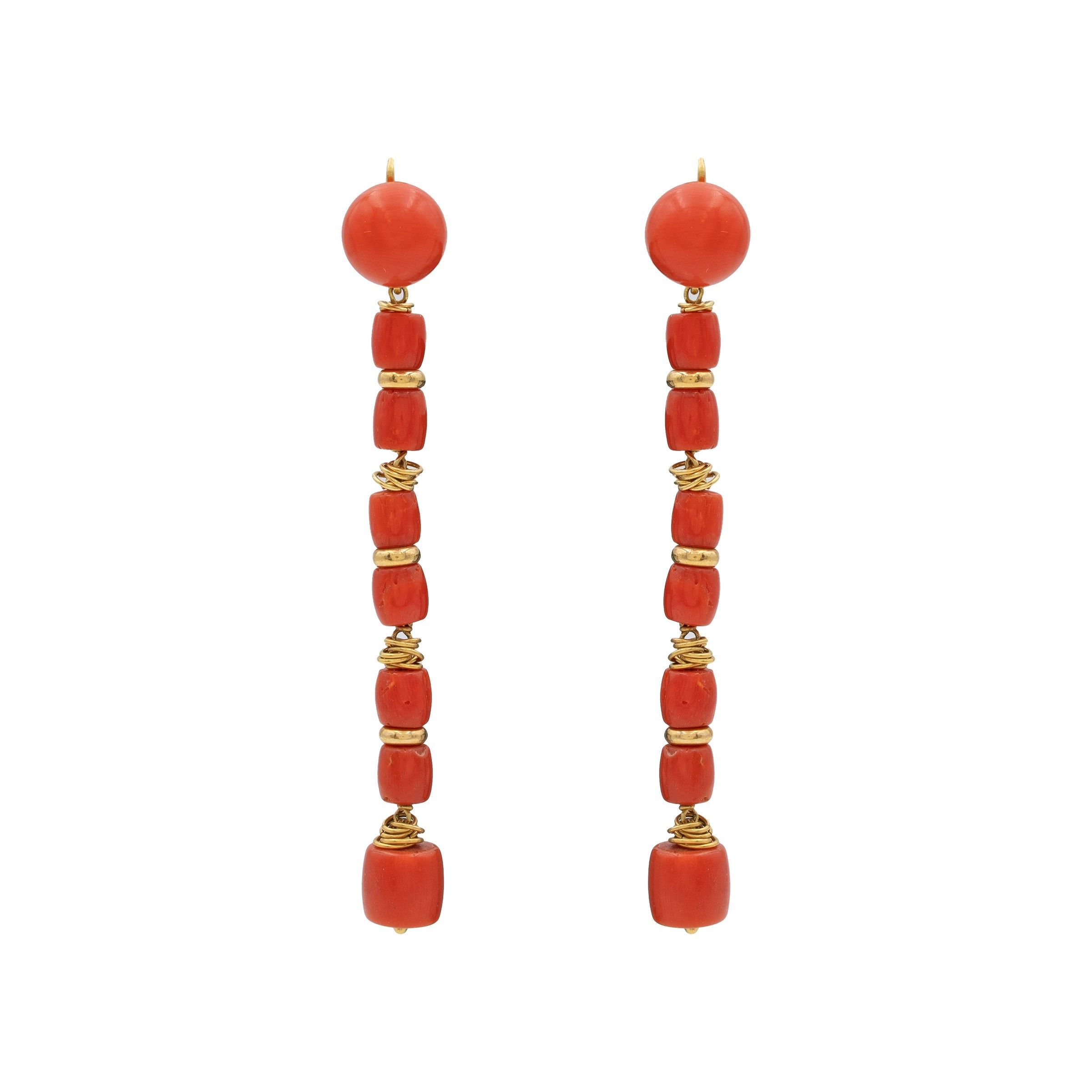 Orecchini pendenti in oro giallo 18kt e corallo mediterraneo