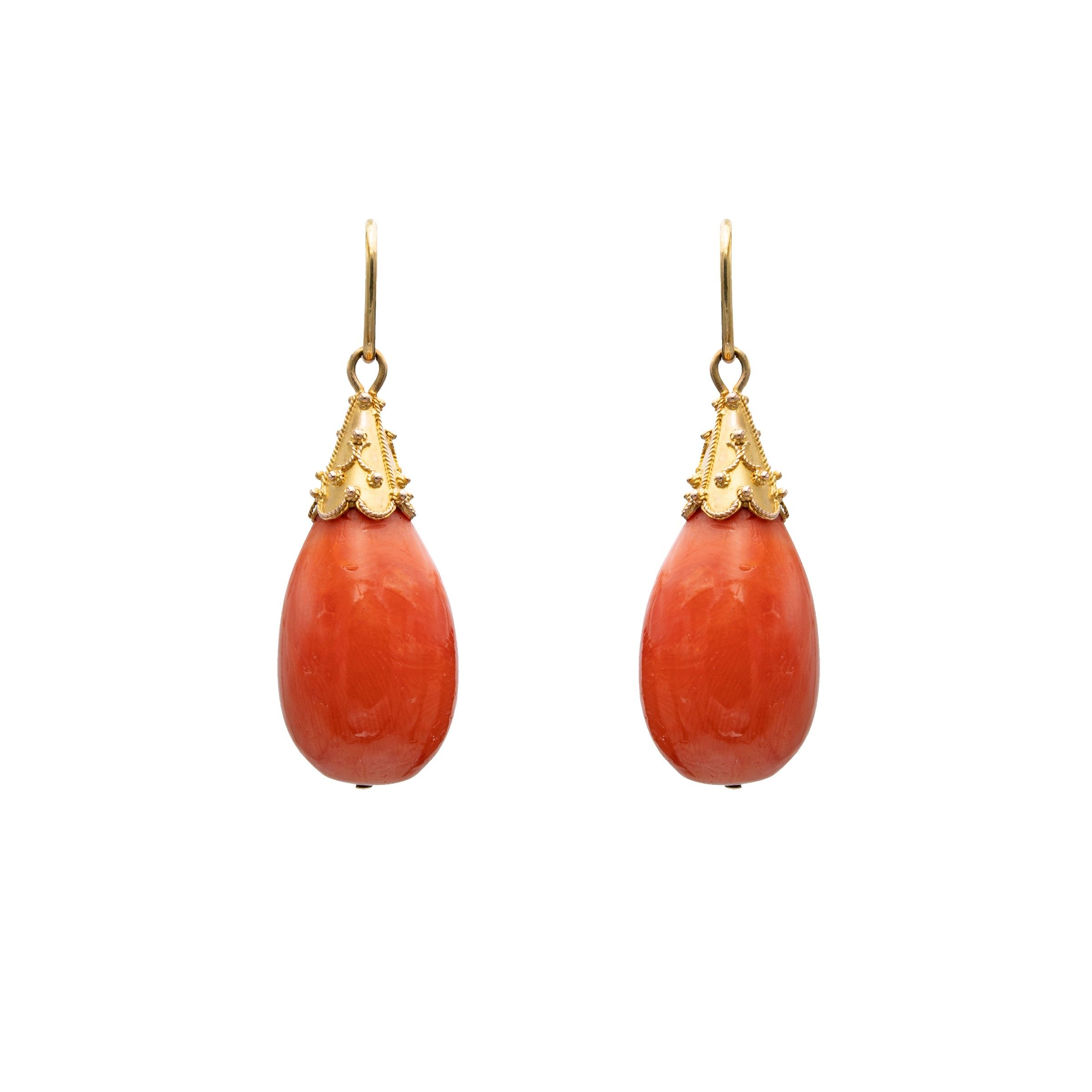 Orecchini pendenti in oro giallo 18kt e corallo mediterraneo