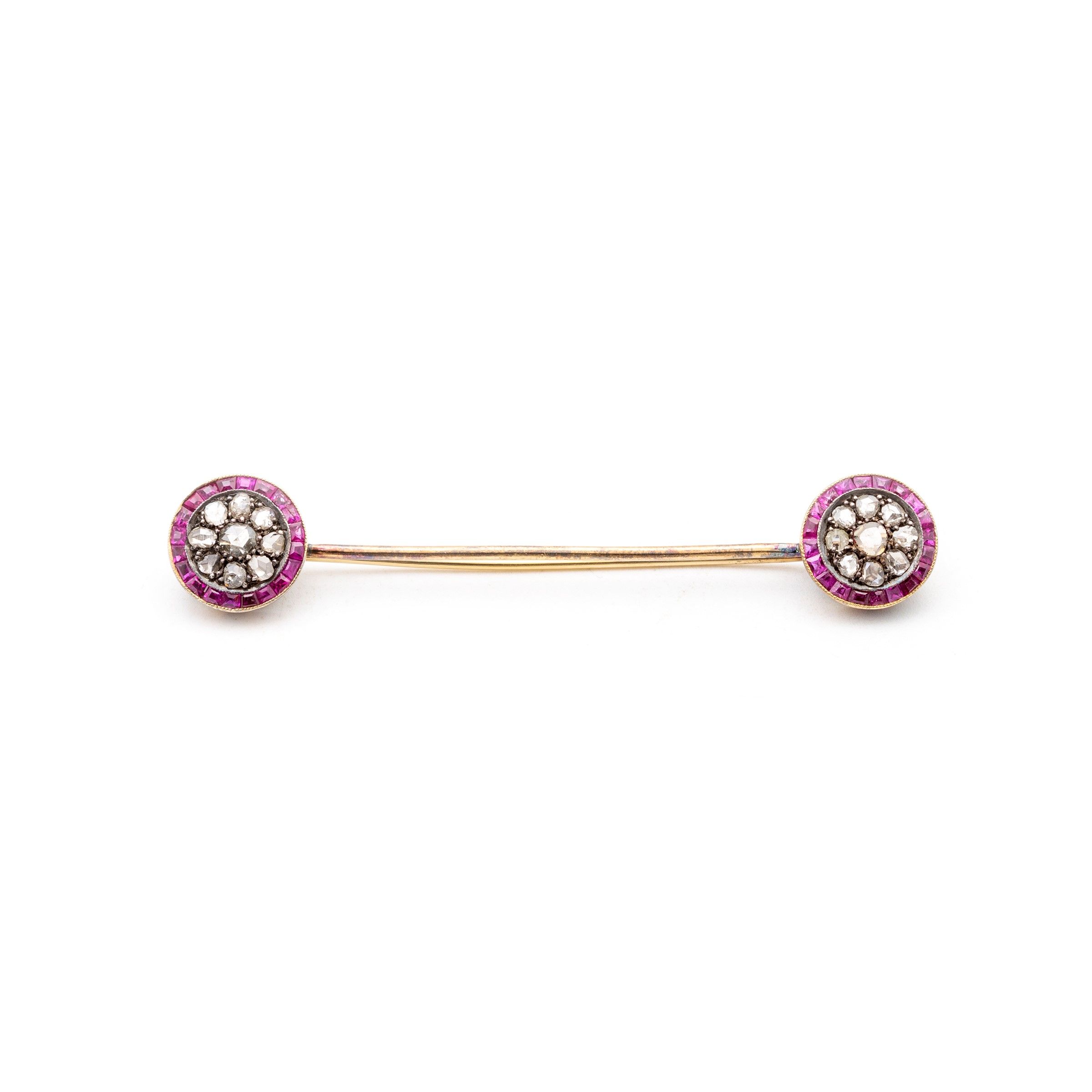 primi '900 rose di diamante e rubini taglio carré, lunghezza 7,5 cm.