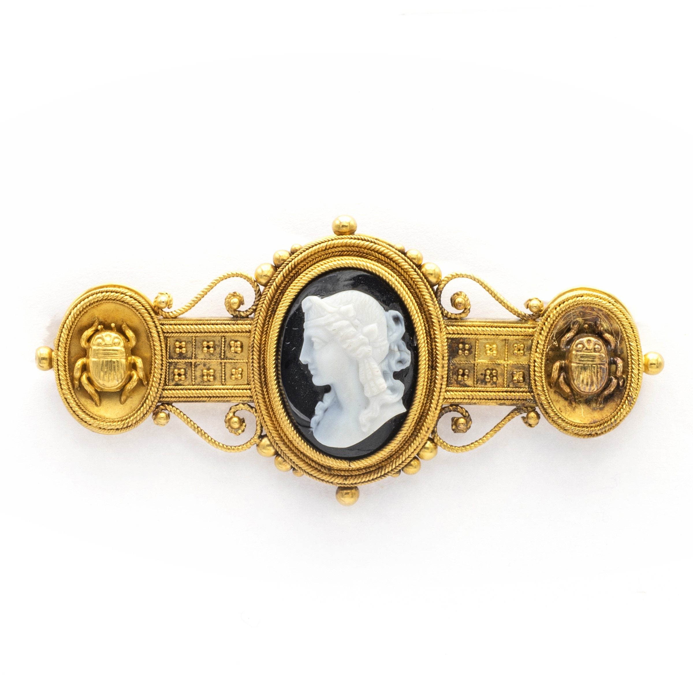 Roma, XIX Sec. raffigurante profilo femminile, ai lati decorata con due scarabei, misure 6x3 cm.