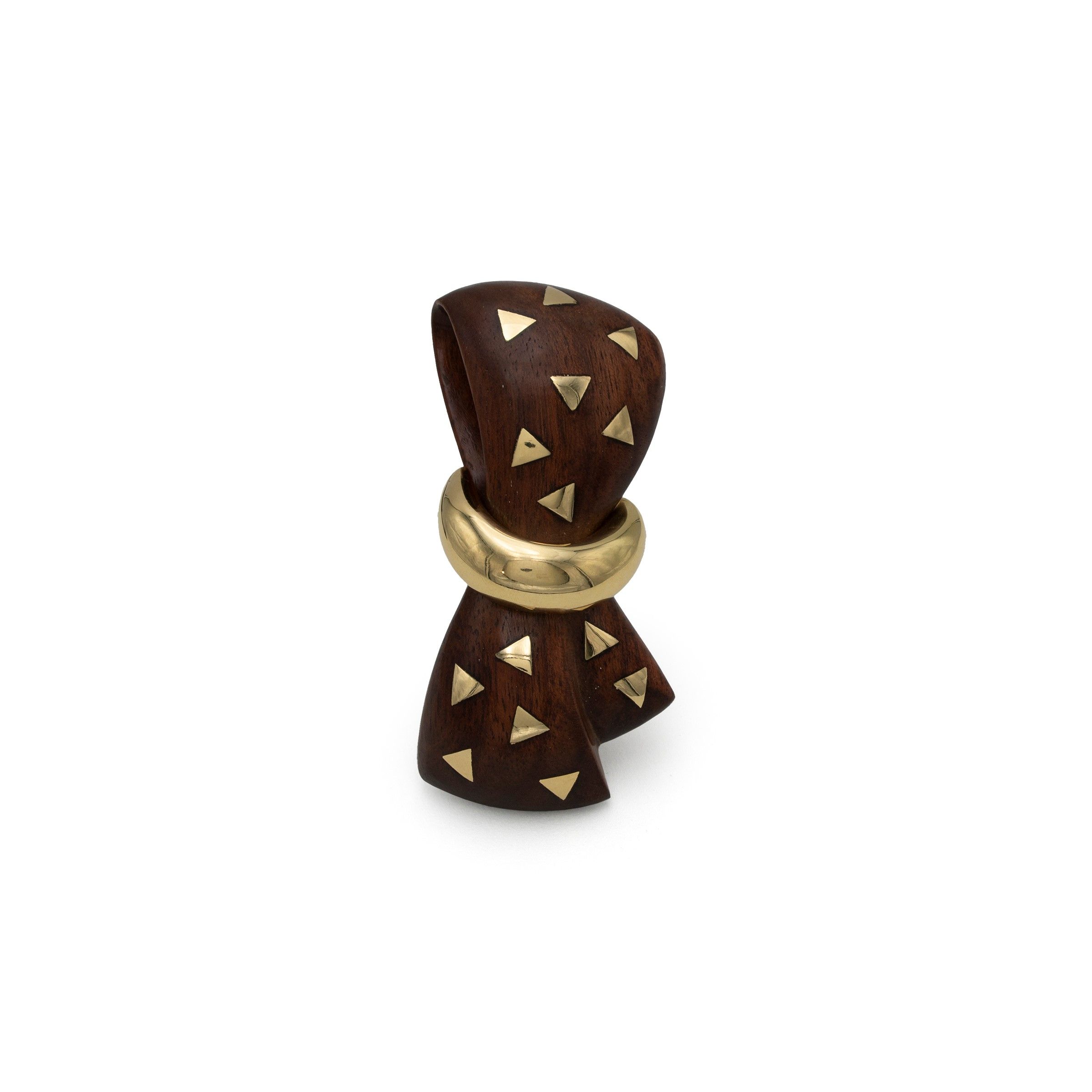 firmata e numerata, anni 70 in oro giallo 18kt e legno misure 7,5x3,5 cm.