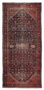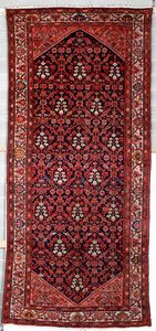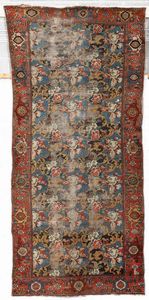 Cm 183X405 campo blu con decoro herati, particolare il piccolo medaglione centrale