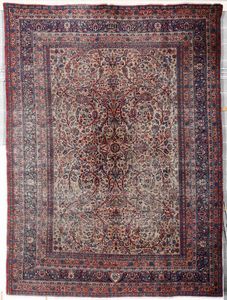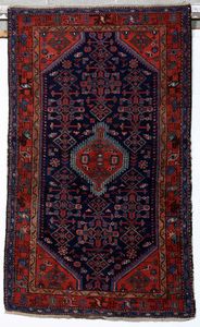 Cm 183X405 campo blu con decoro herati, particolare il piccolo medaglione centrale