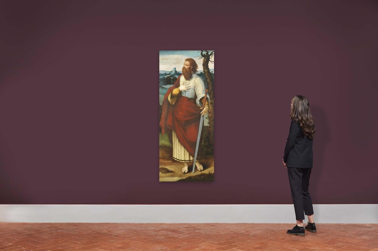 La tipologia della tavola e la postura del santo in lieve scorcio definiscono l’opera quale possibile pannello laterale di un manufatto ben più articolato e alla quale probabilmente corrispondeva il pendant di un San Pietro.