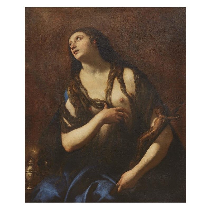 Più che le interpretazioni del soggetto proposte da Guido – peraltro dissonanti nella casta presentazione dell’affascinante penitente, così come la ritroviamo nella tela a Roma nella Galleria Nazionale di Arte Antica e in quelle che da essa derivano – è l’esempio di Giovanni Lanfranco ad avere, sembra, influenzato le scelte formali del nostro autore: si vedano infatti le due versioni della Maddalena portata in cielo dagli angeli, a Roma nella galleria Colonna e in collezione privata genovese analizzate da Erich Schleier in occasione della monografica tenuta a Roma e a Parma nel 2002 (Giovanni Lanfranco. Un pittore barocco tra Parma, Roma e Napoli. Catalogo della mostra, Milano 2002, nn. 39 e 40).