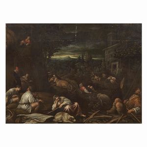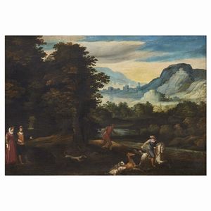 Artista fiammingo attivo in Veneto, sec. XVII PAESAGGIO CON FIGURE olio su tela, cm 93x130 Flemish Artist active [..]