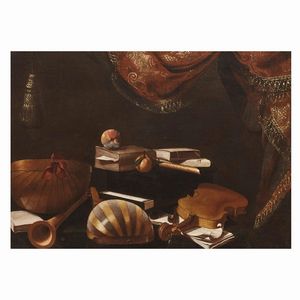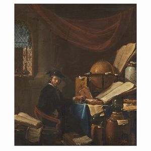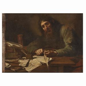 Artista caravaggesco, sec. XVII FILOSOFO olio su tela, cm 99,5x134 Caravaggesque Artist, 17th century A PHILOSOPHER [..]