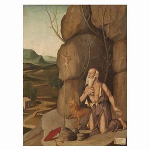 Aniello Falcone (Napoli, 1607 – 1656) EREMITA IN UNA GROTTA olio su tela, cm 82x103 HERMIT IN A GROTTO [..]