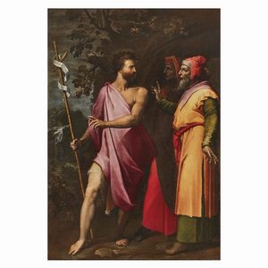 Artista caravaggesco, inizio sec. XVII SAN GIOVANNI BATTISTA SAN GIOVANNI EVANGELISTA coppia di dipinti, olio [..]