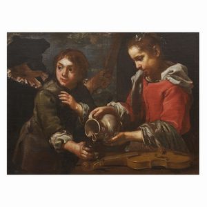 Bernhard Keilhau, detto Monsù Bernardo (Helsingor, 1624 – Roma,1687) DUE BAMBINI E SCARAMUCCIA olio [..]