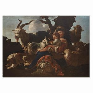 Peter Philip Roos, detto Rosa da Tivoli (Sankt Goar, 1657 - Roma, 1706) PASTORELLA CON GREGGE olio su tela, [..]