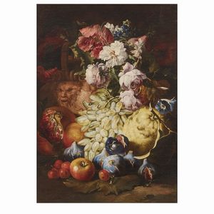 Abraham Brueghel (Anversa, 1631 – Napoli, 1697) NATURA MORTA DI FRUTTA E FIORI CON VASO ISTORIATO olio su [..]