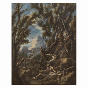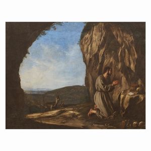 Aniello Falcone (Napoli, 1607 – 1656) EREMITA IN UNA GROTTA olio su tela, cm 82x103 HERMIT IN A GROTTO [..]