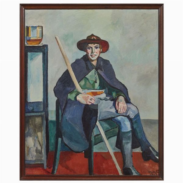 on the reverse: clabel of the exhibition Prima e dopo la Secessione Romana. Pittura in Italia 1900-1935, Viareggio, Centro Matteucci per l'Arte Moderna, 20 luglio - 3 novembre 2013; label 18/ Ritratto di giovane esploratore/ (Eros Chini)/ 1915/ Proprietà Eros Chini/ Lido di Camaiore (Lucca)