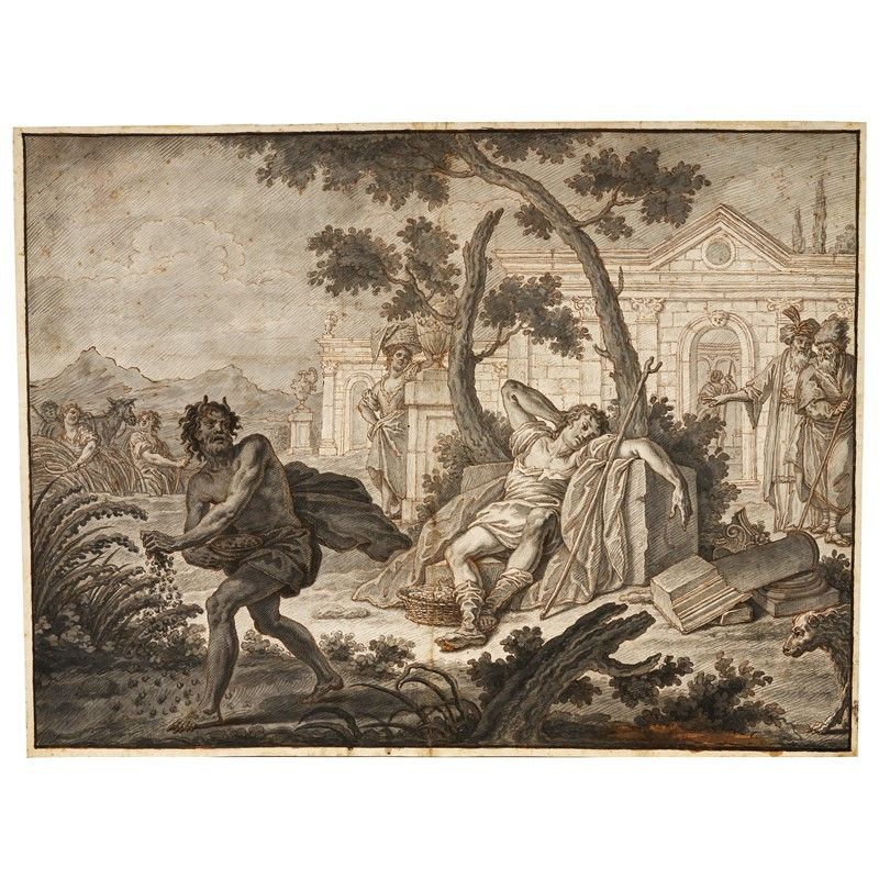 matita rossa, penna e inchiostro, pennello e inchiostro acquarellato, carta vergellata, mm 410 x540