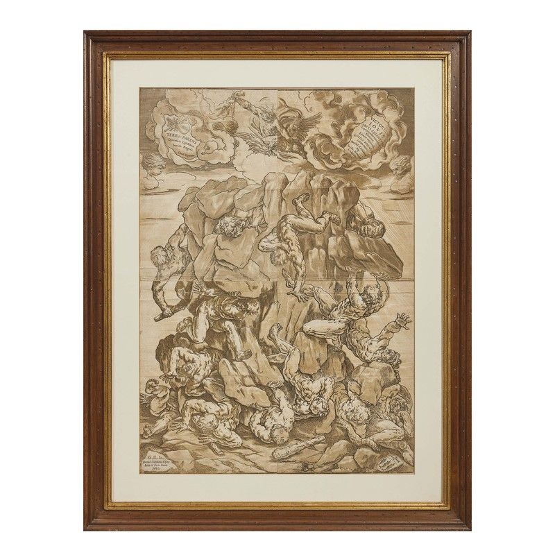 FALL OF THE GIANTS (after Guido Reni) chiaroscuro woodcut from three blocks, printed on four sheets, mm 867x622