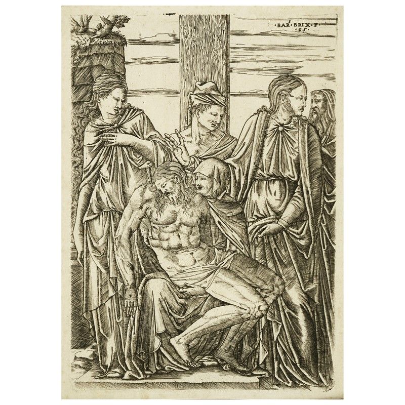 Bartolomeo da Brescia (Brescia ca. 1506 – ca. 1578) LA LAMENTAZIONE AI PIEDI DELLA CROCE incisione a bulino su carta vergellata filigranata, mm 254x182 firmata in alto a destra sulla lastra e datata “65”