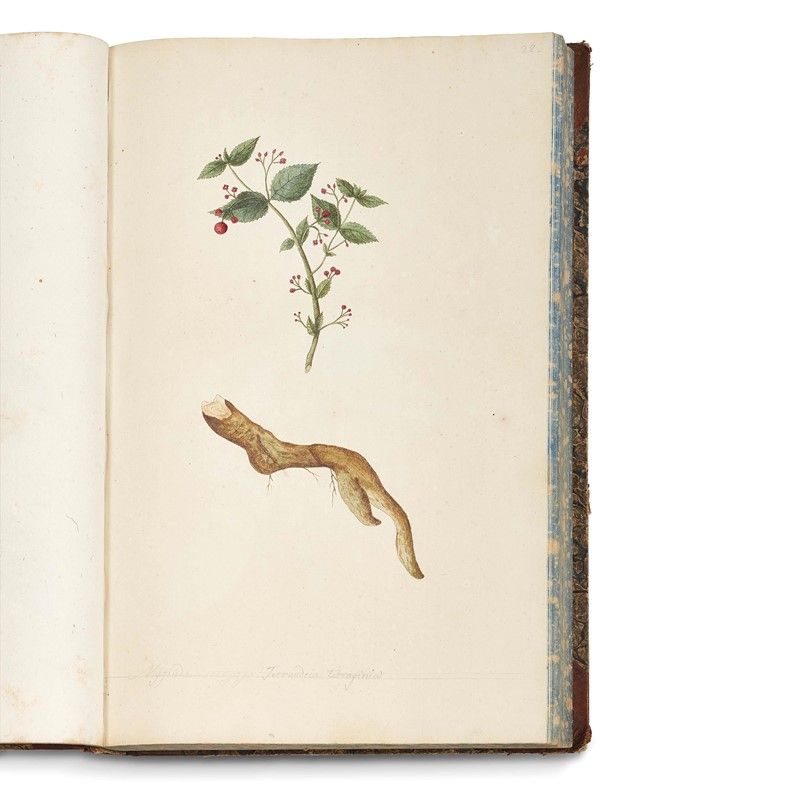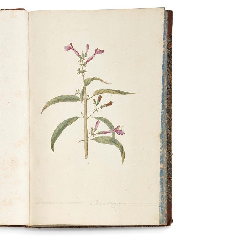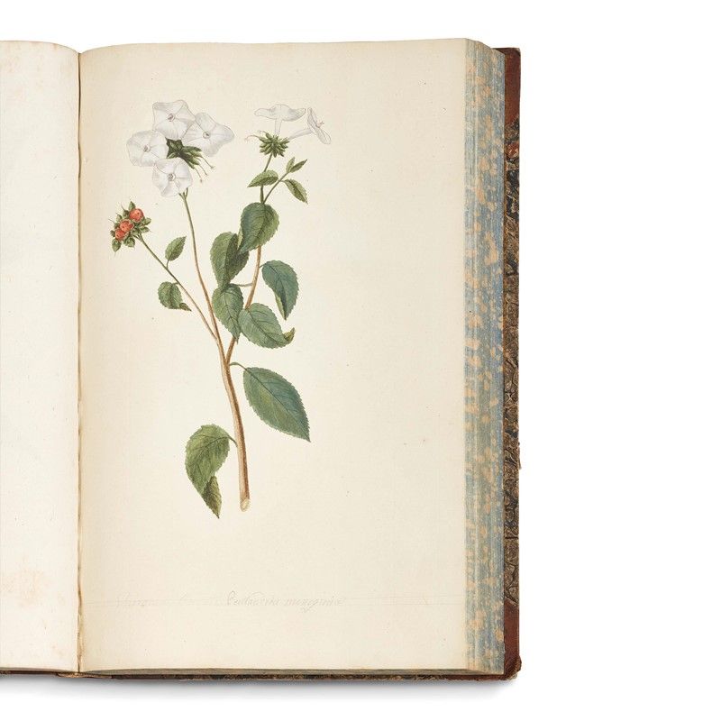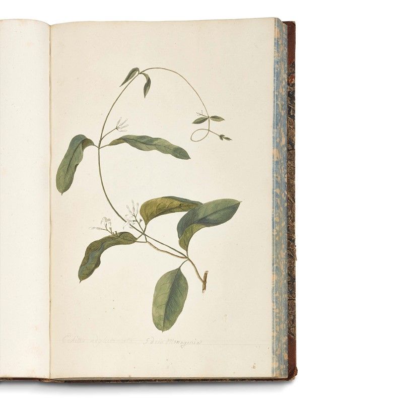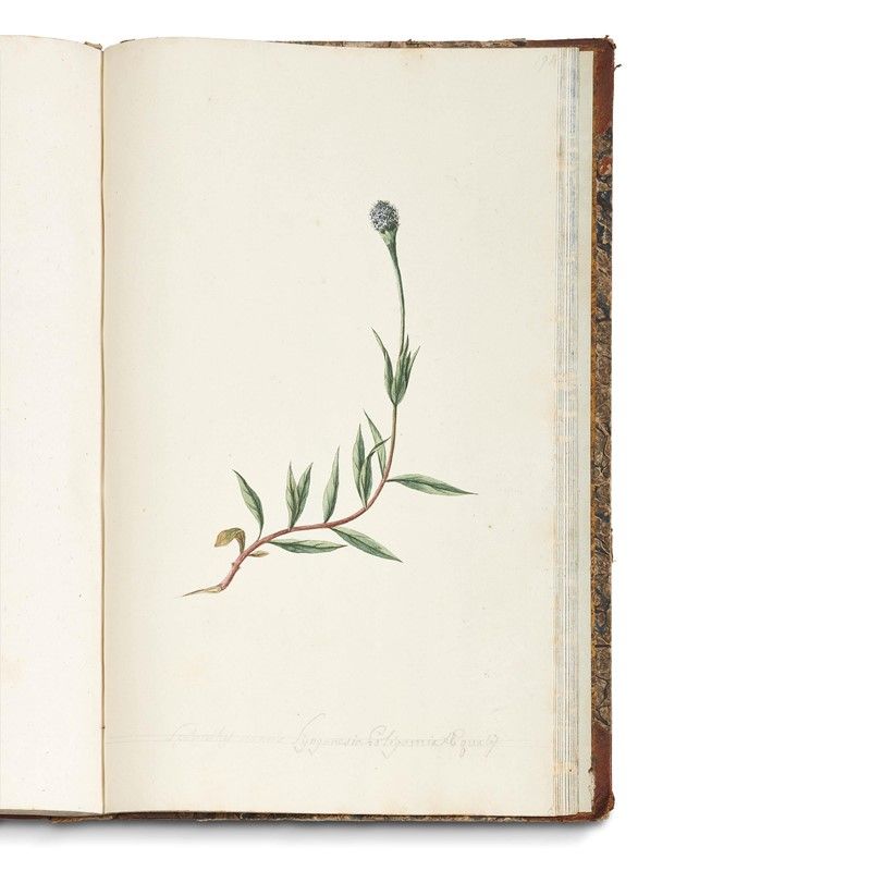 raccolta di 213 illustrazioni botaniche all'interno di volume rilegato in pelle, matita nera e acquarelli colorati, carta vergellata filigranata, mm 365x250 ciascuno