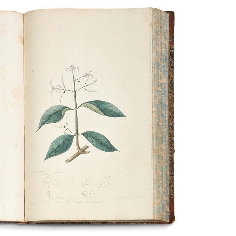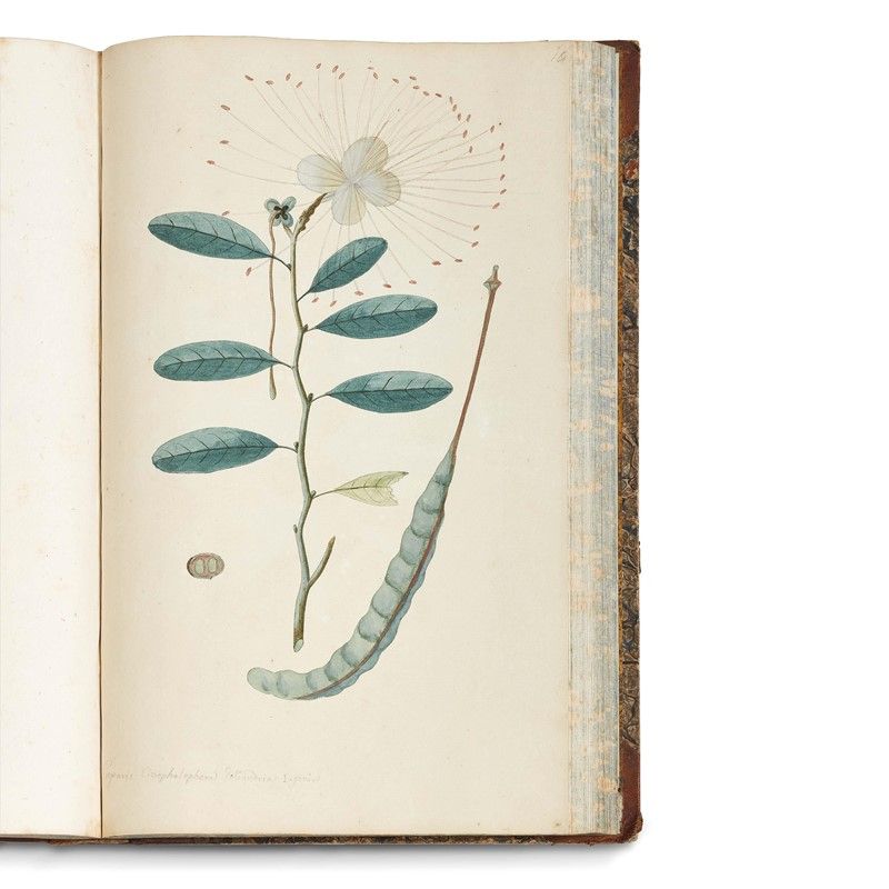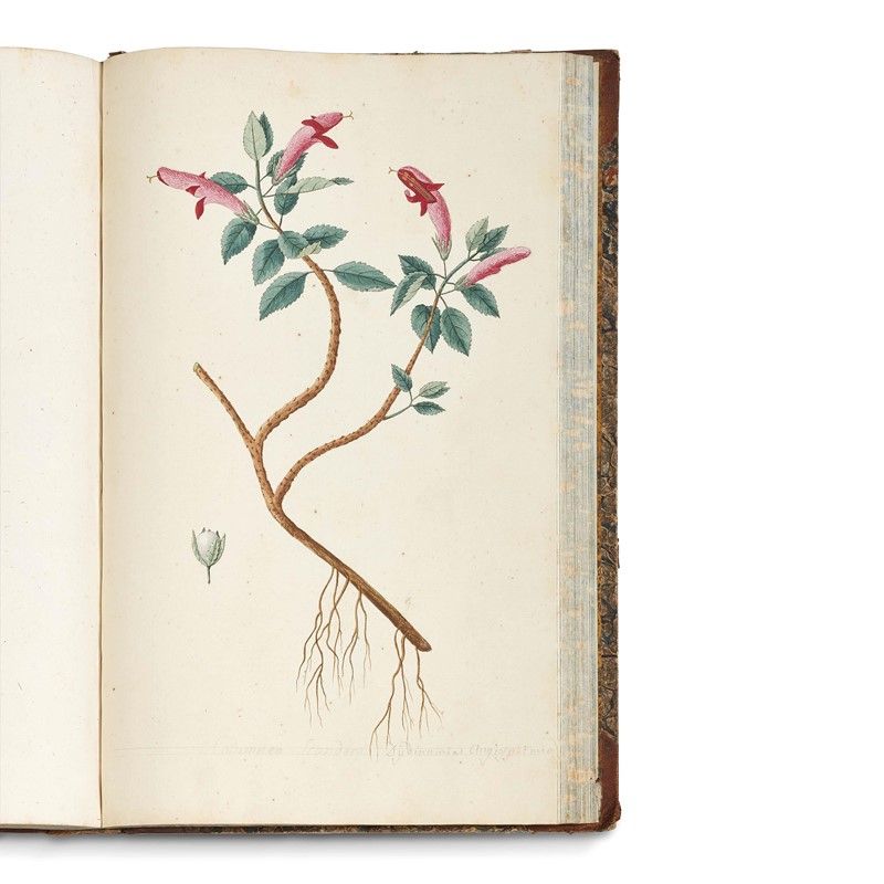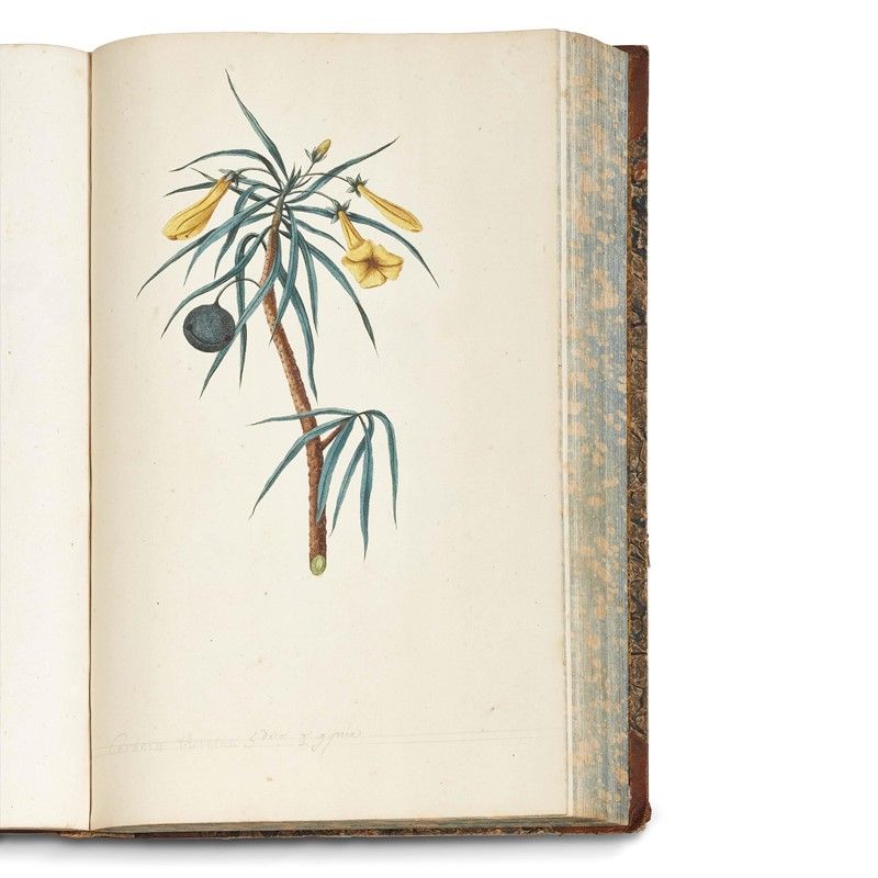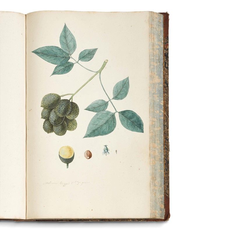 raccolta di 213 illustrazioni botaniche all'interno di volume rilegato in pelle, matita nera e acquarelli colorati, carta vergellata filigranata, mm 365x250 ciascuno