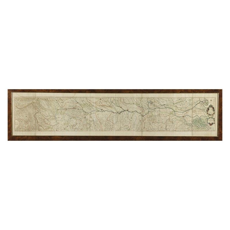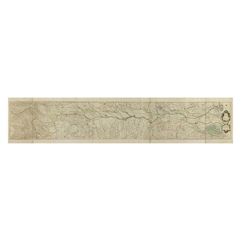 LE COURS DU PO hand colored engraved map in 5 sheets joined, mm 400x490 (each plate); mm 400x 2450 (total) signed "gravé par Berey" and at the bottom center " A Paris chez Berey graveur rue St. Jacques devant la fontaine St. Severin a la Princesse de Savoye"
