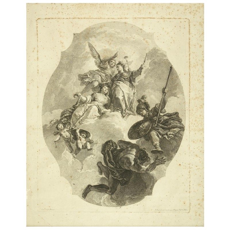 VIRTUE CROWNING NOBILITY etching, laid paper, mm 425x335 (plate) lettered on the plate "F. Fontebasso pinxit"; "F. Bartolozzi incid. appo Wagner Ven. C. P. E. S."