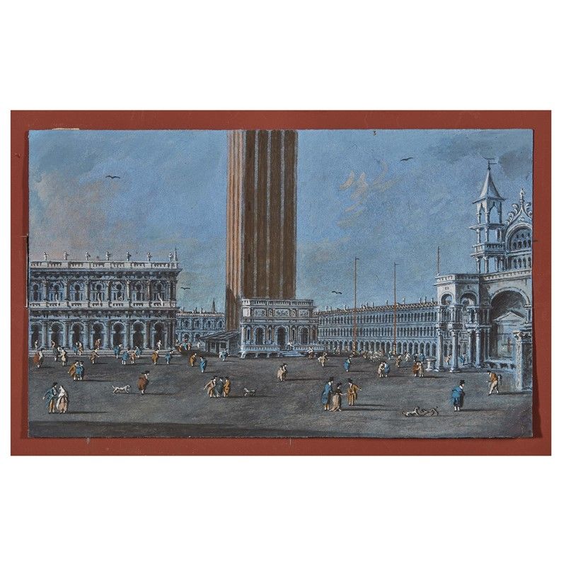 VIEW OF PIAZZETTA SAN MARCO gouache on laid paper, mm 105x175 signed and inscribed on verso in pen and black ink