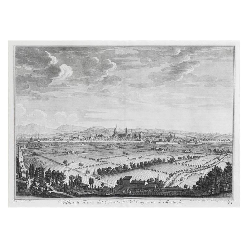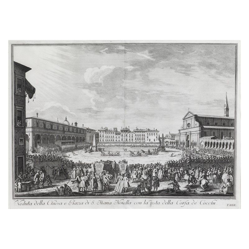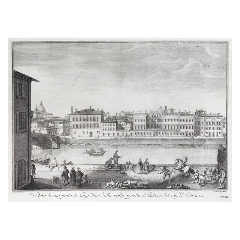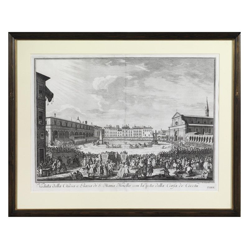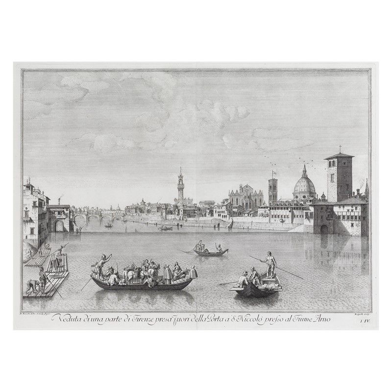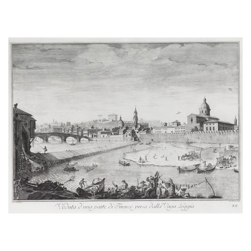Commissionata dal Marchese Andrea Gerini che volle “porre sotto gli occhi de’ curiosi riguardatori specialmente esteri, le vedute più nobili e vaghe della città di Firenze”, la serie è l’opera più alta e celebrata del vedutismo fiorentino. Alcuni dei più celebri incisori del tempo furono chiamati a tradurre i disegni di Giuseppe Zocchi, oggi conservati alla Pierpont Morgan Library. Bellissime impressioni.