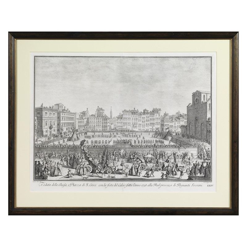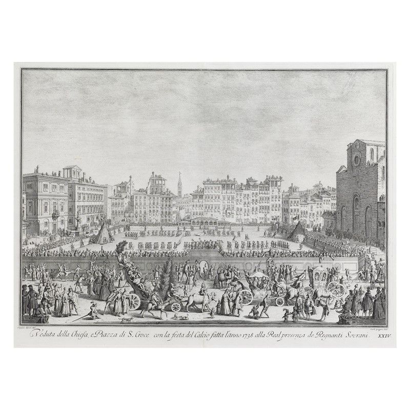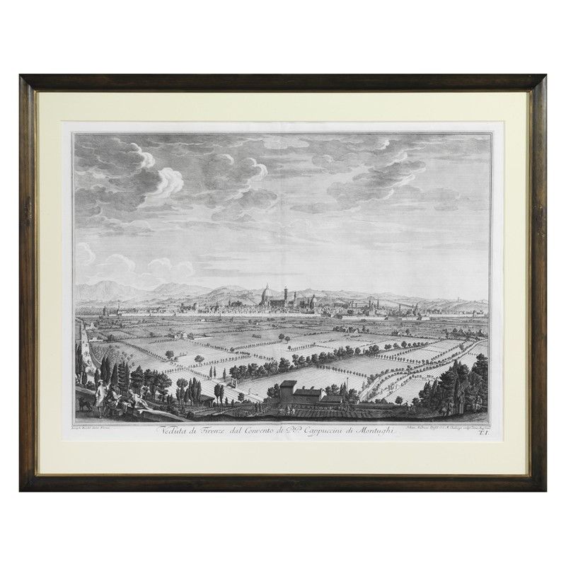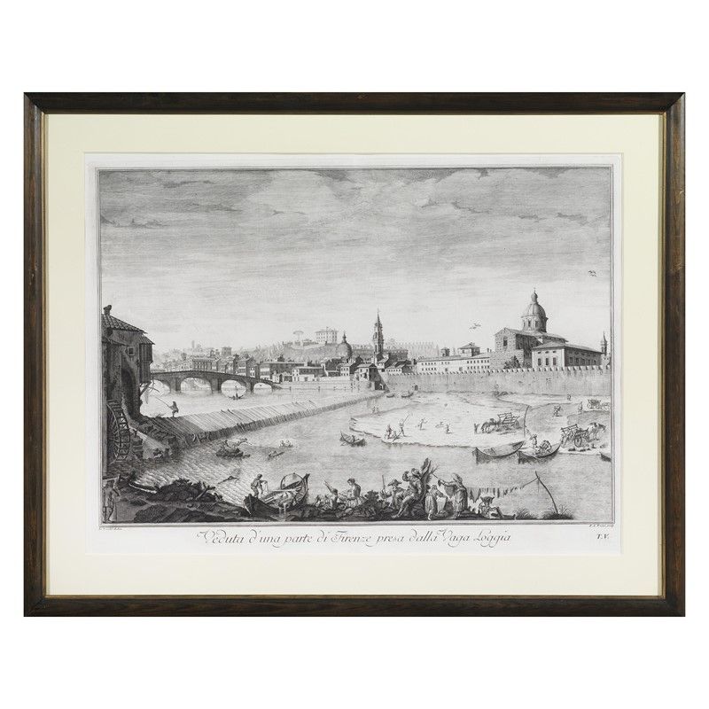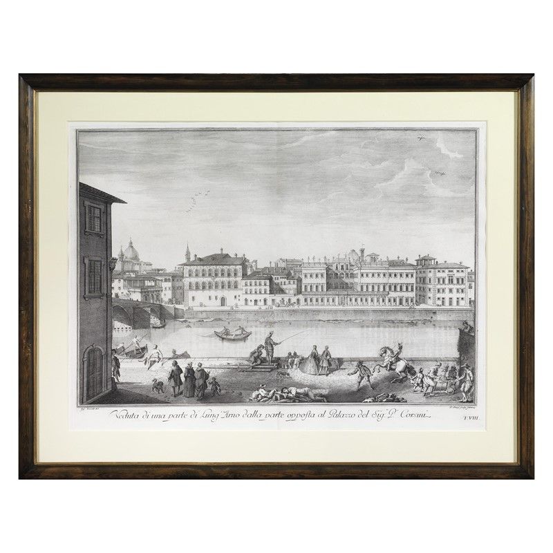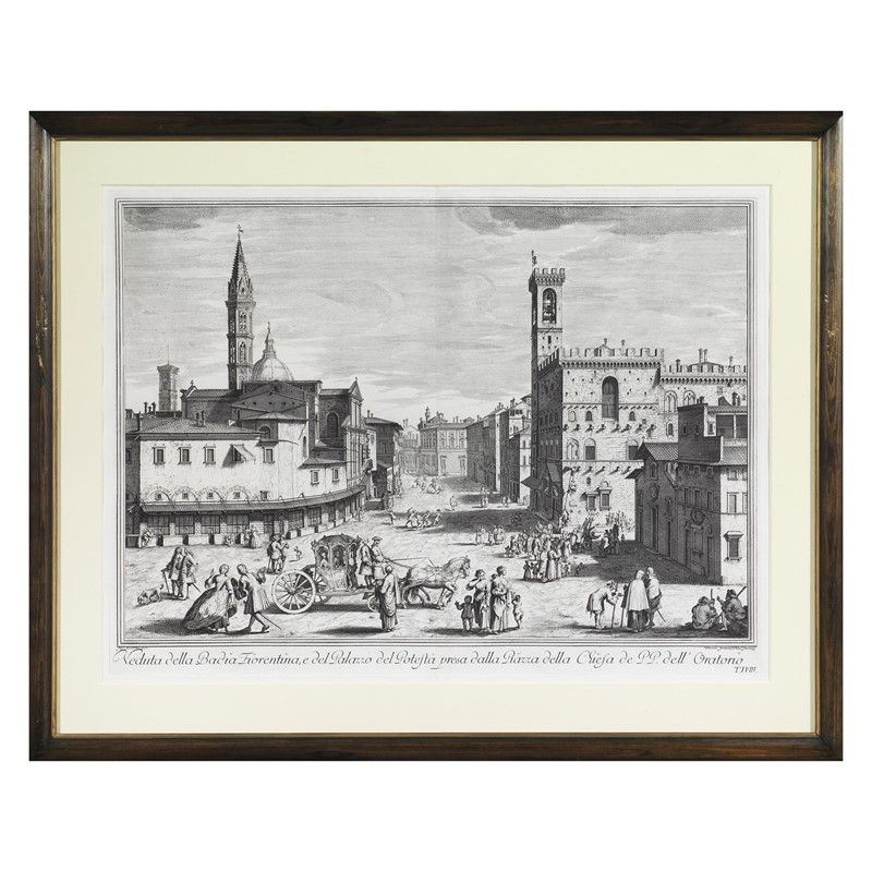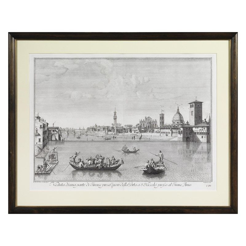 Commissionata dal Marchese Andrea Gerini che volle “porre sotto gli occhi de’ curiosi riguardatori specialmente esteri, le vedute più nobili e vaghe della città di Firenze”, la serie è l’opera più alta e celebrata del vedutismo fiorentino. Alcuni dei più celebri incisori del tempo furono chiamati a tradurre i disegni di Giuseppe Zocchi, oggi conservati alla Pierpont Morgan Library. Bellissime impressioni.
