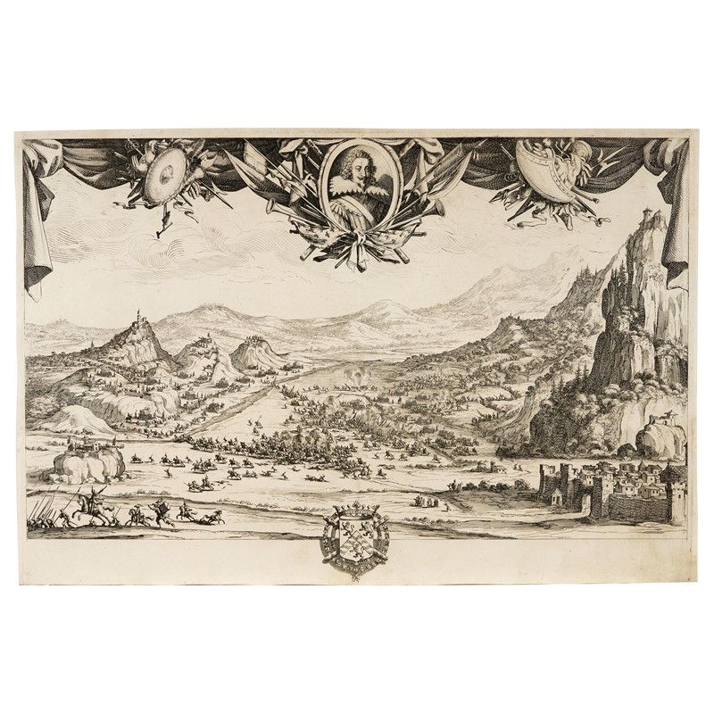 Jacques Callot (Nancy 1592 – 1635) LA BATTAGLIA DI AVIGLIANA, 1630 acquaforte su carta vergelata, mm 354x530. I stato su 2 classificato da Lieure R.R.R. (extrêmement rare)