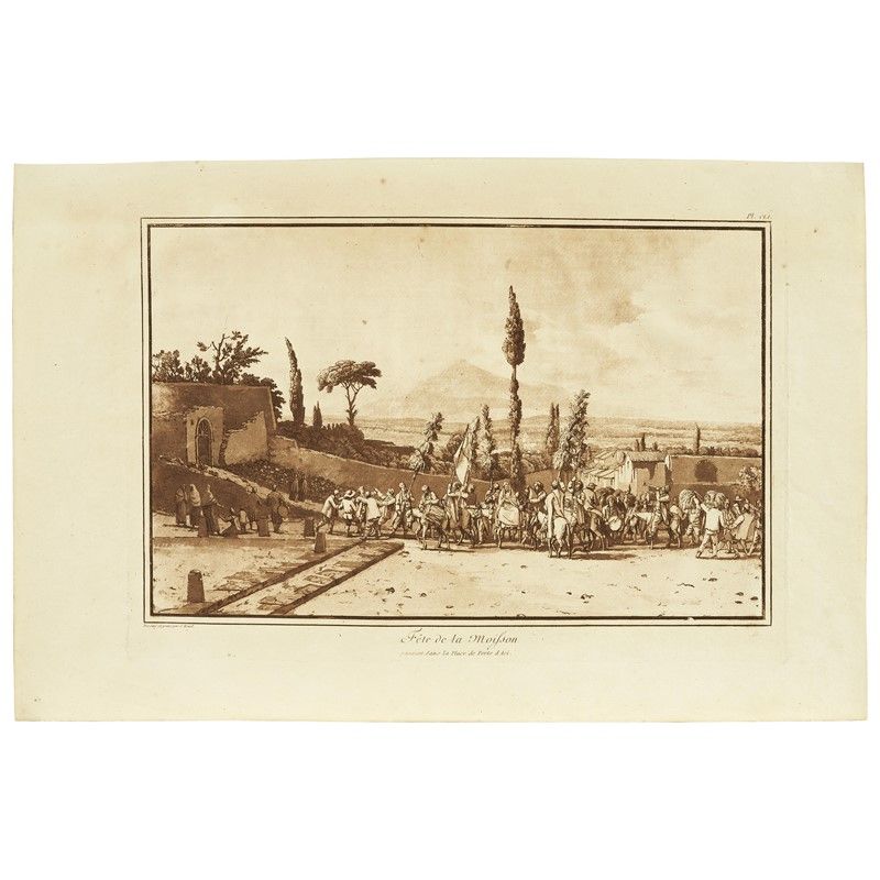 FÊTE DE LA MOISSON PASSANT DANS LA PLACE DE PORTO D'ACI FROM "VOYAGE PITTORESQUE DES ISLES DE SICILE, DE MALTE ET DE LIPARI" (1782-1787) acquatint engraving, laid paper, mm 260x380 (plate); 320x493 (sheet)