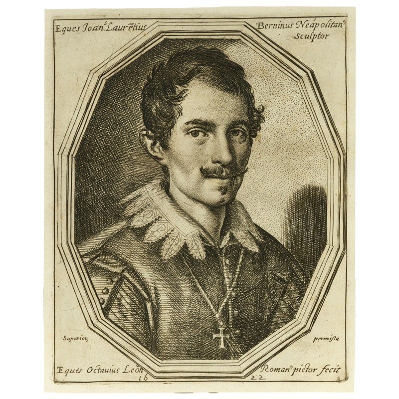 PORTRAIT OF GIAN LORENZO BERNINI etching and engraving, laid paper, mm 150x120 (sheet) lettered across top 'Eques Joans. Lauretius Berninus Neapolitan sculptor', in bottom section 'Superior permissu/ Eques Octavius Leon. Roman. pictor fecit./ 1622'