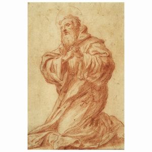 Artista del sec. XVIII SANTO MONACO IN PREGHIERA matita rossa, carta vergellata, mm 212x140 Artist of 18th century [..]