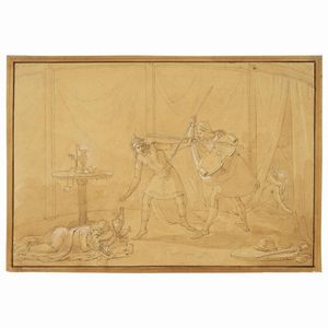 Artista neoclassico, sec. XIX SCENA STORICA matita nera e biacca su carta preparata, mm 190x276 Neoclassical [..]