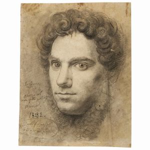 Artista romano, sec. XIX RITRATTO MASCHILE matita nera, carta filigranata, mm 298x234 Roman Artist, 18th century [..]