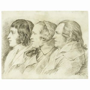 Artista neoclassico TRE RITRATTI MASCHILI DI PROFILO matita nera, carta vergellata filigranata, mm 205x263 Neoclassical [..]